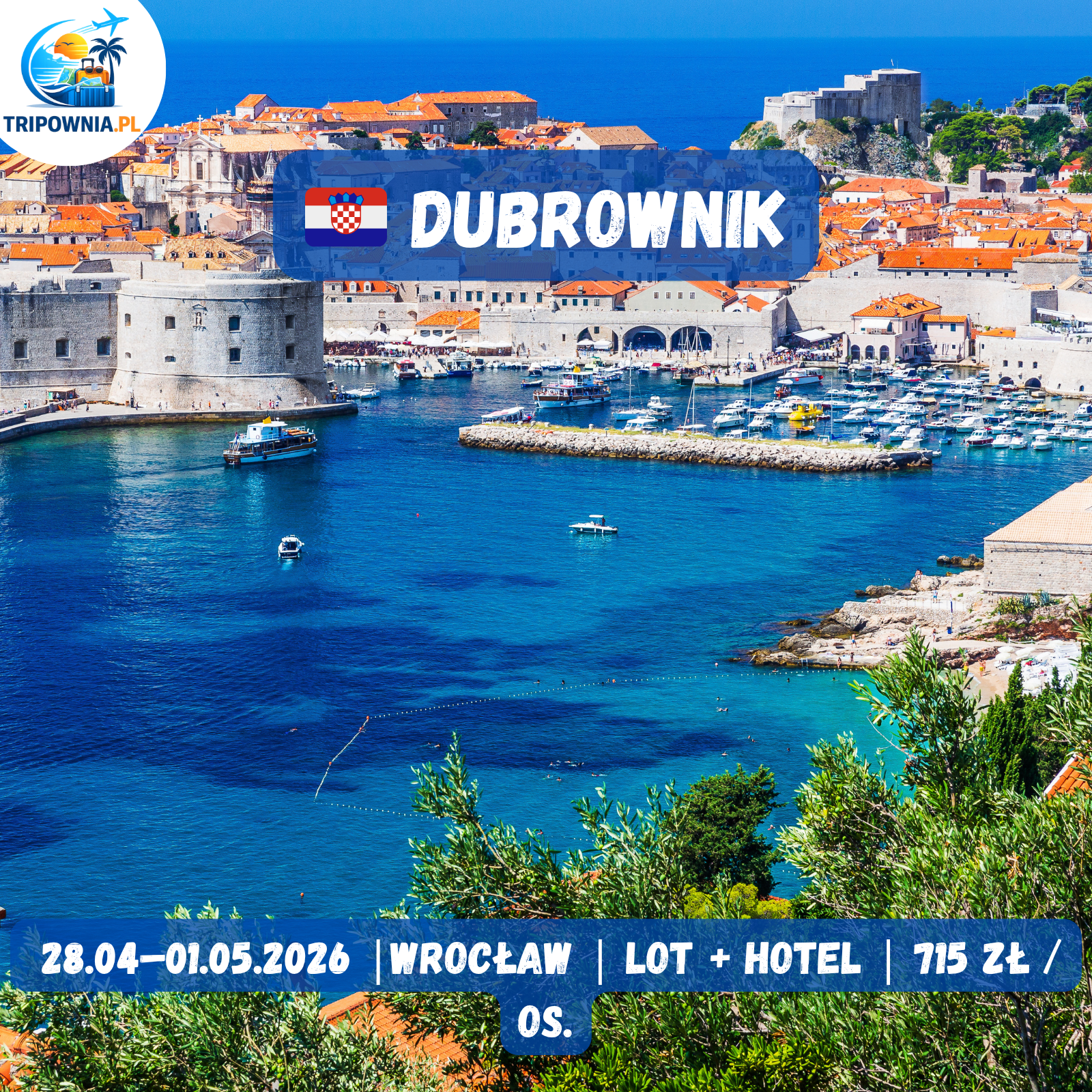 • wylot: 28.04.2026, 08:10 WrocÅ‚aw – 09:55 Dubrownik