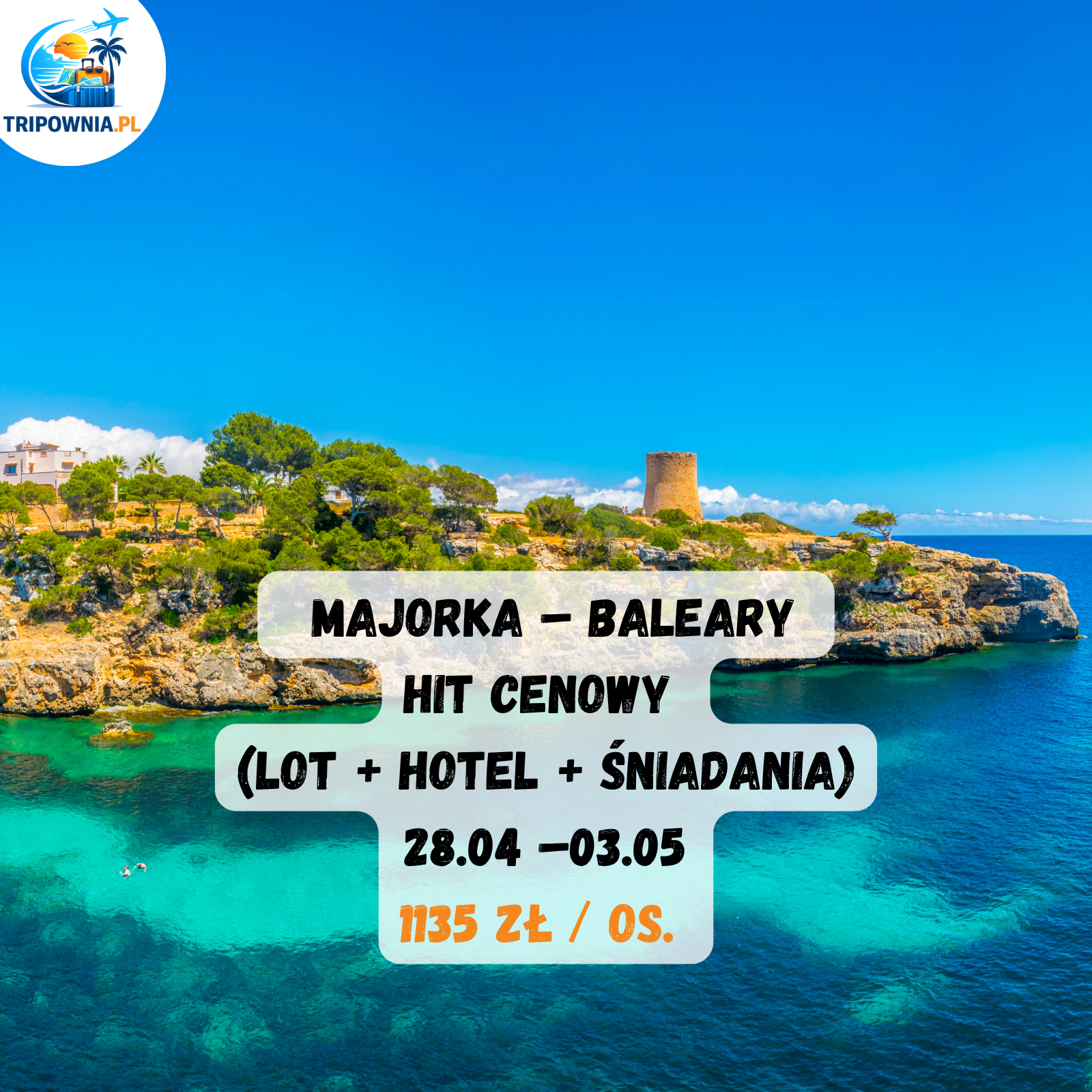 🇪🇸 MAJORKA – BALEARY HIT CENOWY✈️ 28.04 –03.05 | 5 nocy 💰 1135 zł / os. (lot + hotel + śniadania)